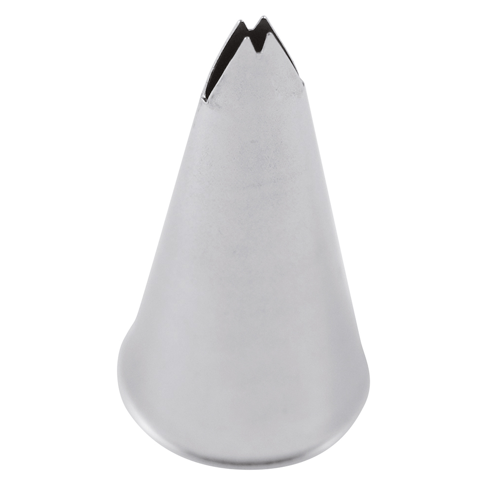 Bocchetta per sac à poche o sacchetto da pasticceria in acciaio inox con forma di foglia. Questa bocchetta non presentana alcuna saldatura, garantendo una fuoriscuita del prodotto uniforme ed una eleveta resistenza. Confezione da 5 pezzi. Le misure fanno riferimento al foro d'uscita e l'altezza a quella complessiva della bocchetta.