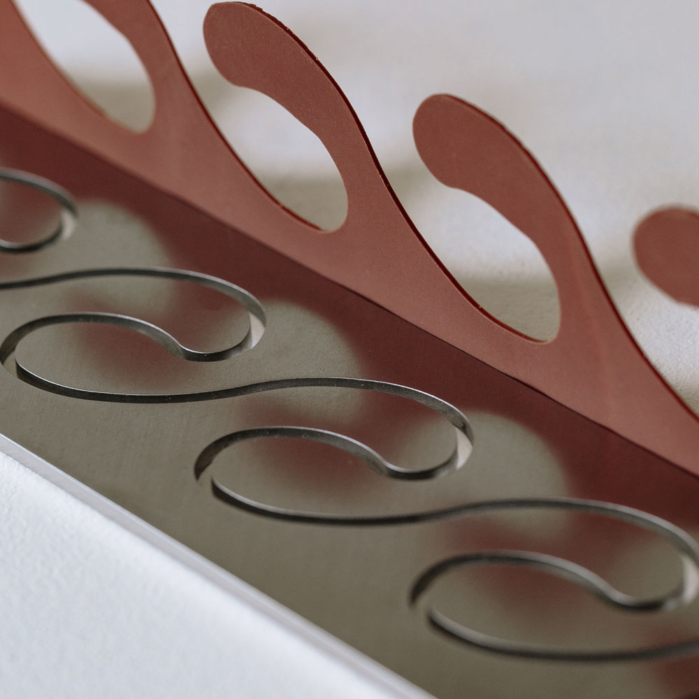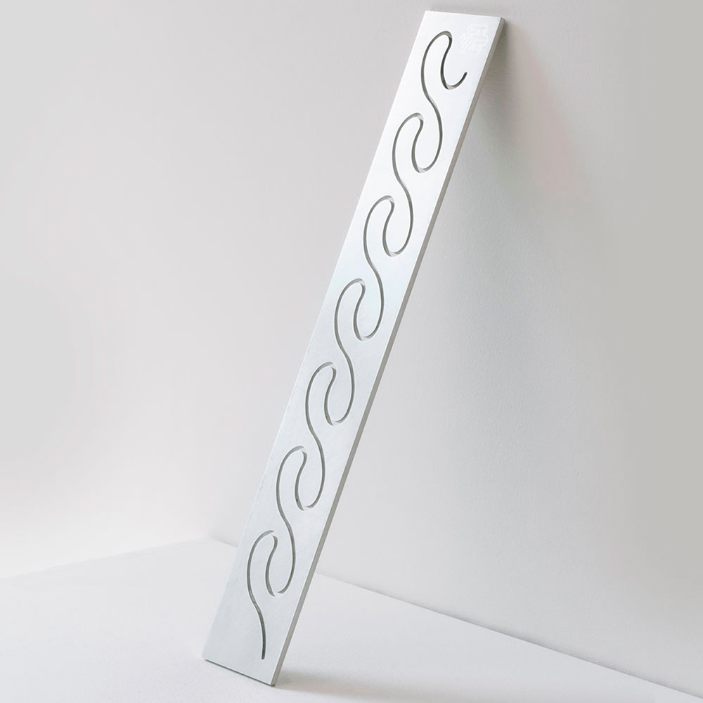 Dima in acciaio inox per creare eleganti decorazioni in cioccolato a forma di onda. Questo template per decorazioni, realizzato in acciaio inox e ideato da Frank Haasnoot, pastry chef di fama internazionale, consente di produrre decorazioni elaborate per rifinire monoporzioni e torte.